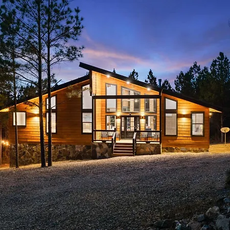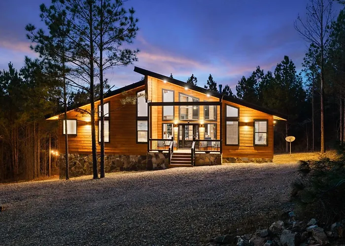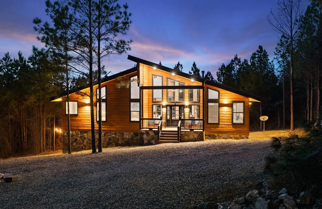 Located nearly a 10-minute ride from the Hochatown Petting Zoo, the 4-bedroom Hidden Cabin Among Pines With Hot Tub & Fire Pit Broken Bow offers a patio with views of the mountain.